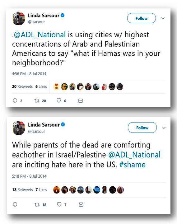 And naturally, dear Linda Sarsour, you were appalled [archived version doesn’t have link] when the ADL’s Abraham Foxman condemnedthe kidnapping and murder of three teenaged Israeli students by Hamas terrorists: “The ADL should be the PDL (Pro Defamation League) – defaming Palestinians. Shame. Shame.”