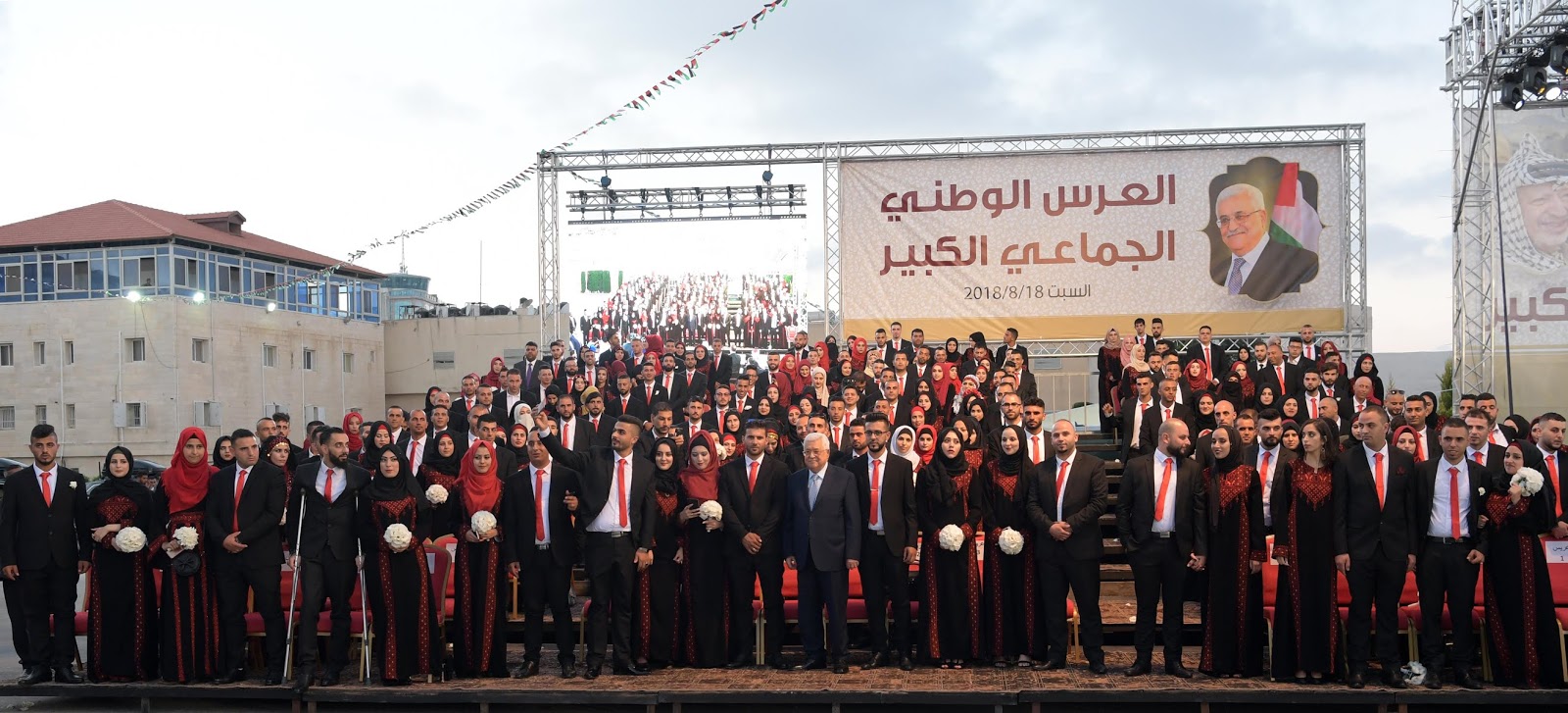 On Saturday evening, at the presidential headquarters in Ramallah, 500 grooms and brides got married in a mass ceremony sponsored by Mahmoud Abbas.