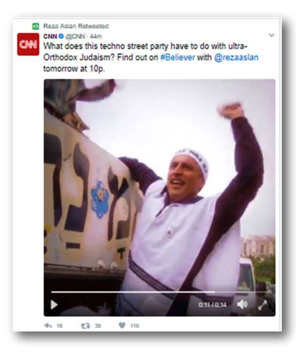 From Aslan’s Twitter timeline, one can see that he greatly appreciates Ha’aretz as a source of material for denigrating Israel, but for once, I have good tidings from Ha’aretz for Reza Aslan: he doesn’t have to lose sleep over his worries for Israel’s future – as Anshel Pfeffer concluded in a recent article under the title “In Israel the Age of the Rabbis Is Ending”: “No, Israel isn’t becoming more religious. It’s actually becoming more flexible as the lines that used to divide among the secular, traditional, religious-Zionist and ultra-Orthodox − and clearly demarcate the sects and streams − have become blurred.” Pfeffer even threw in a line criticizing the media for overlooking the trends he described: “The media as usual is finding it hard to drop its old habits.” Looking at you, Reza Aslan…