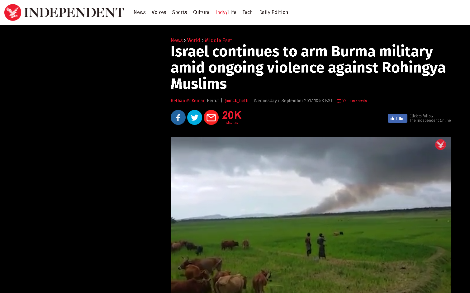 Similar articles in Haaretz and Middle East Eye make it sound like Israel has a huge trade with Myanmar/Burma and imply that Israel is it’s major supplier of arms, especially arms being used against the Muslims there.