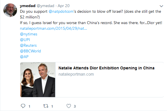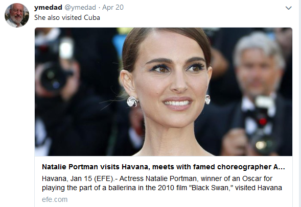 Natalie in Pictures April 22, 2018 Ian General News http://daphneanson.blogspot.com/2018/04/natalie-in-pictures.htmlBy Daphne Anson Click here for above report Click here for Genesis Prize Click here for above report Meanwhile: And:
