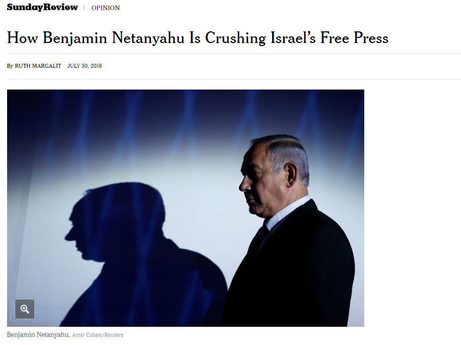 The headline in the New York Times says “How Benjamin Netanyahu Is Crushing Israel’s Free Press.”