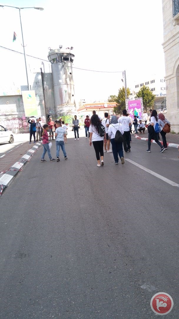 The route is specifically chosen to maximize the participants’ view of the separation barrier.