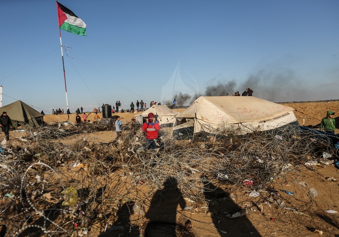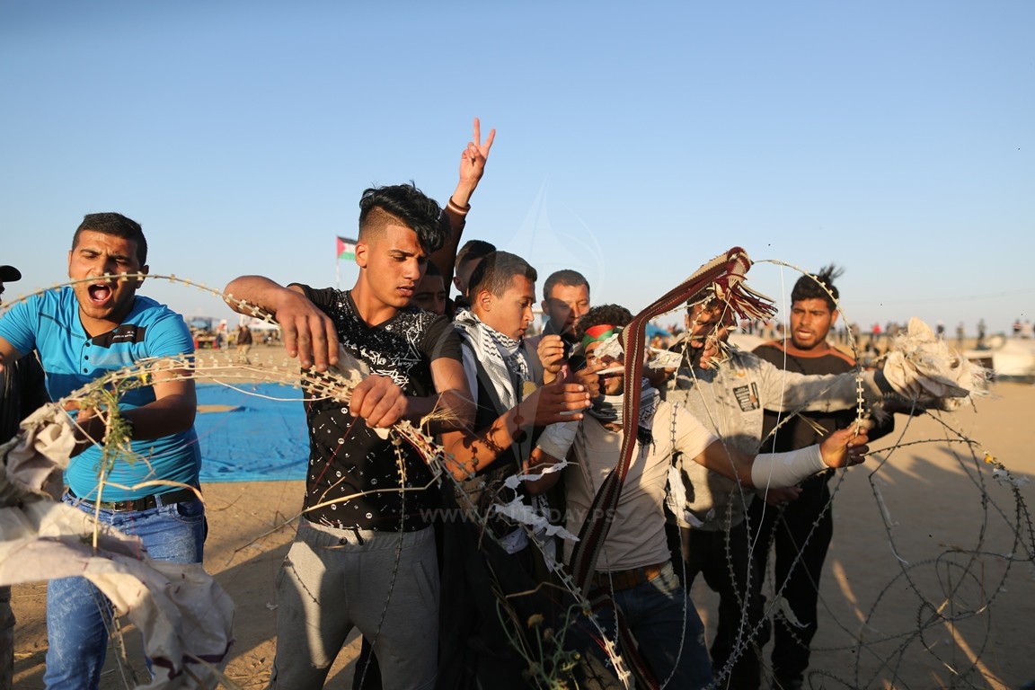 These photos are from Palestine Today showing a large group of Gazans, including many children, cutting large section of the barbed wire fence in Gaza, which would be the inner fence.