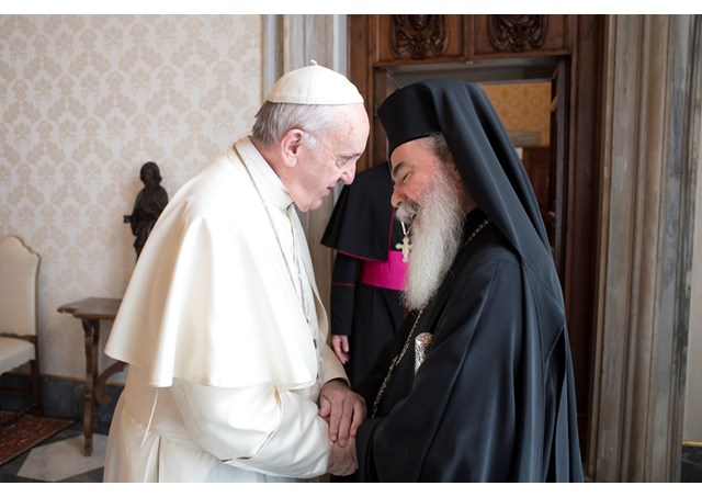 Pope Francis met with Theophilos III, Greek Orthodox Patriarch of Jerusalem, on Monday and he gave a brief speech afterwards.