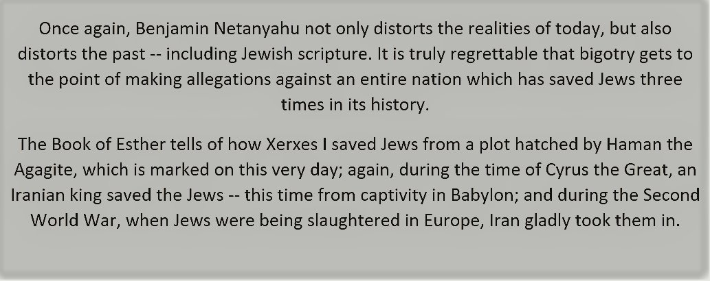 Yes, Zarif is saying that the man who eagerly signed the decree calling for the genocide of the Jews of Persia is a hero for later countermanding that decree at his wife’s behest.