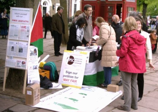 Above: The Richmond Palestine Solidarity Group takes to the streets in their leafy part of London. Look closely. Recognise anyone? (No? Never mind. Clue below. Read on.)