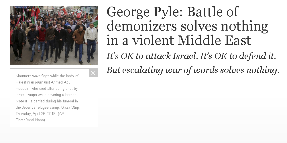 Now, the editor of the newspaper , George Pyle, while not happy that Robinson violated the unwritten rule of saying “Zionist” instead of “Jew” that allows the worst kinds of hate become magically acceptable, still thinks that the piece was not so bad: