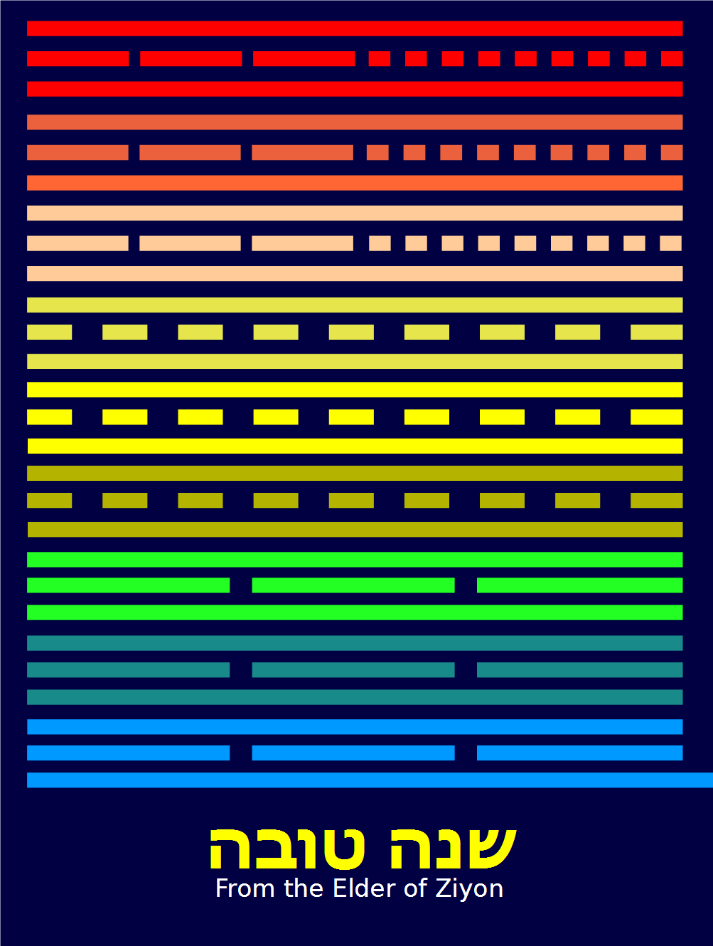 So here is a Rosh Hashanah poster for EoZ fans using the same motif, although using only the mandatory 30 sounds instead of the full 100, and mine is a bit more literal.