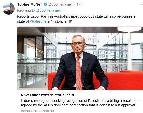 The ABC’s overtly leftist and unashamedly biased-against-Israel Middle East correspondent Sophie McNeill has found a champion in the form of The Australian newspaper’s Israel-bashing John Lyons.