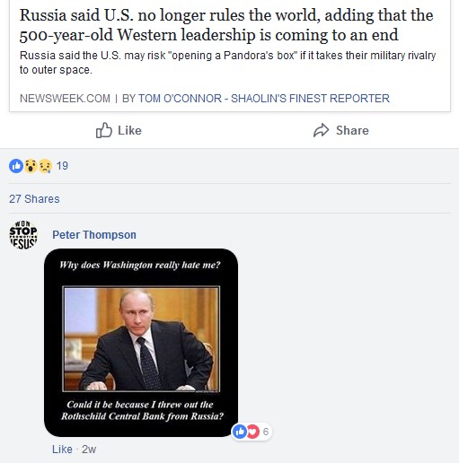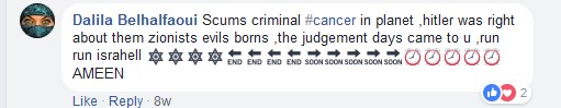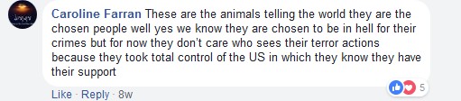 Martin’s Facebook page is littered with comments from feral antisemites. For instance: