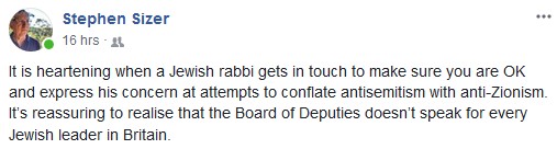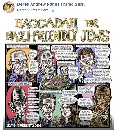 If Sizer doesn’t want to be lumped among the antisemites, he could begin by defriending on Facebook people such as the prolifically-posting Derek Andrew Hands (it would take him some time!):