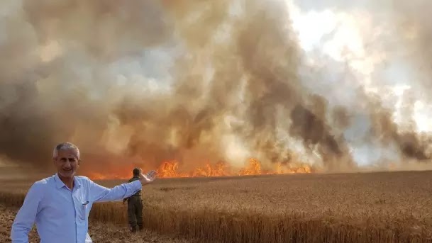 As a result of the fires, hundreds of dunams (dozens of acres) of wheat fields were burned. There were no reports of injuries.