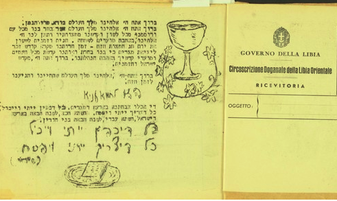 There were major logistical issues that occurred during the preparations for a war time Seder celebrations with the biggest among them being printing enough Haggadot for all the participants. To resolve this issue, the writers and editors confiscated telegrams and other letterheads from the offices of the Libyan authorities. On the backs of these scraps of paper they printed the haggadah with a typewriter and copied them with a Mimeograph machine.