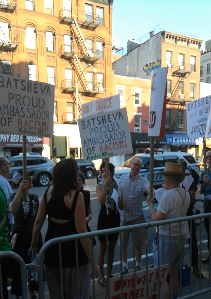 On Tuesday evening, I checked out the protest by BDSers outside the Joyce Theater in New York where Israel’s Batsheva Dance Company was to perform.