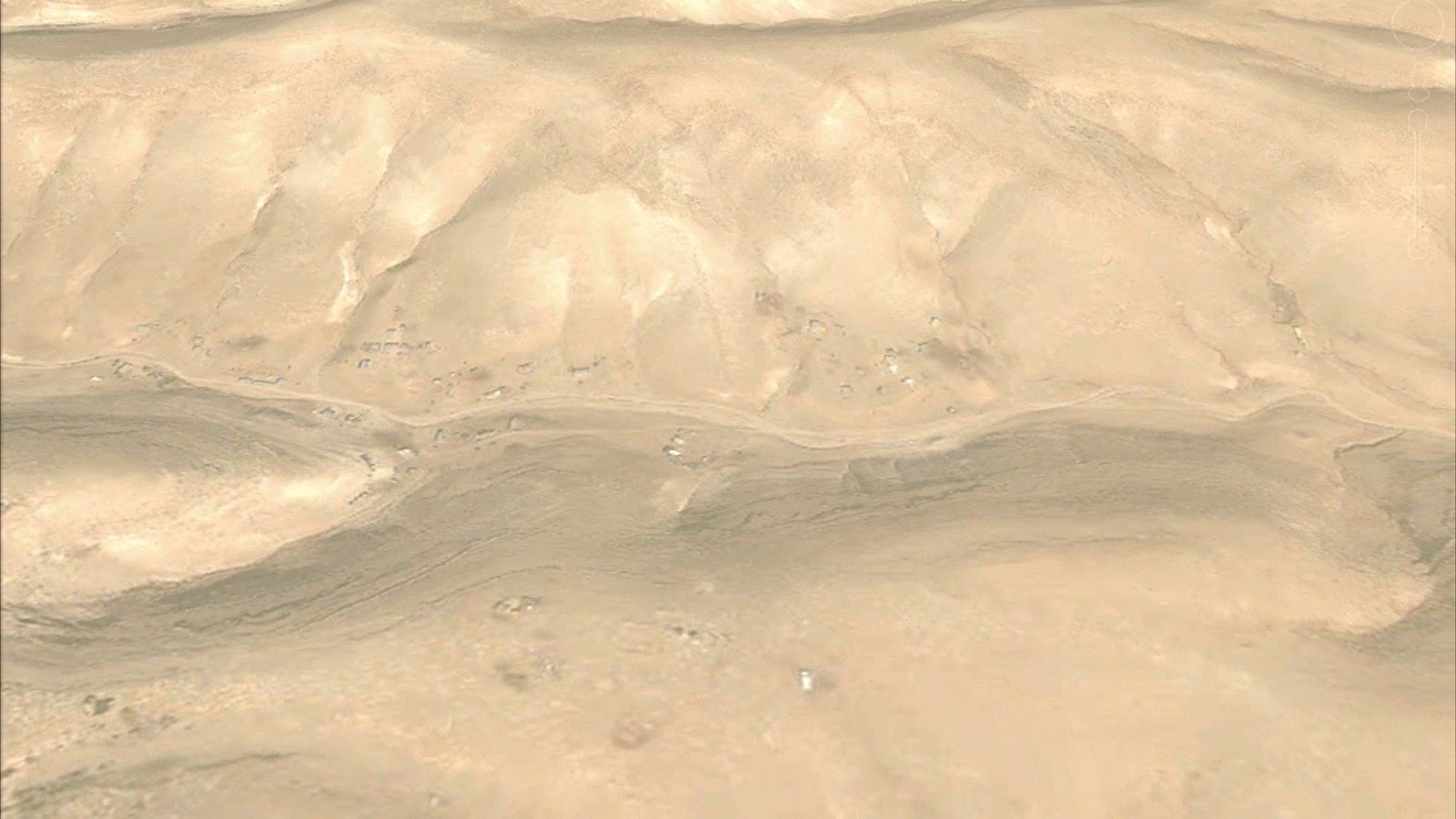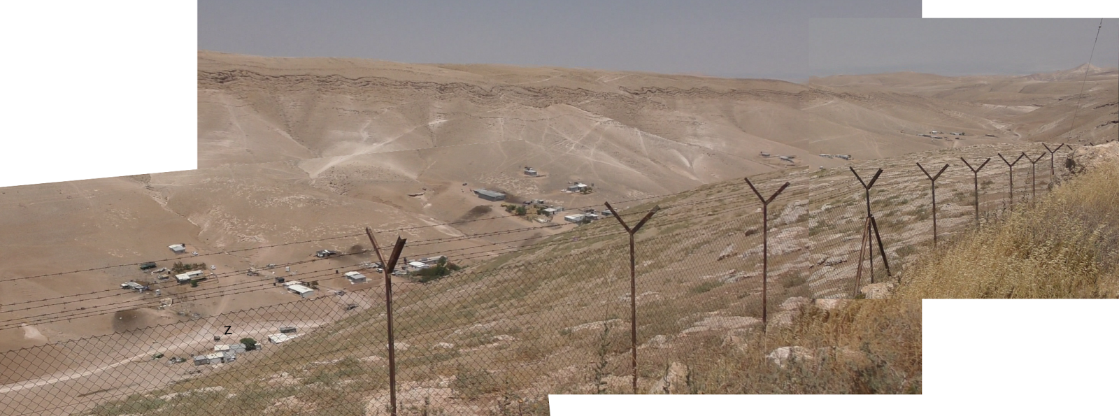 Here is a set of haphazard-looking buildings that were built in a valley near the Jewish town of Keidar. I stitched together three video screenshots. Click on it to see it full size; you should be able to discern about five separate clusters of buildings roughly in a straight line.