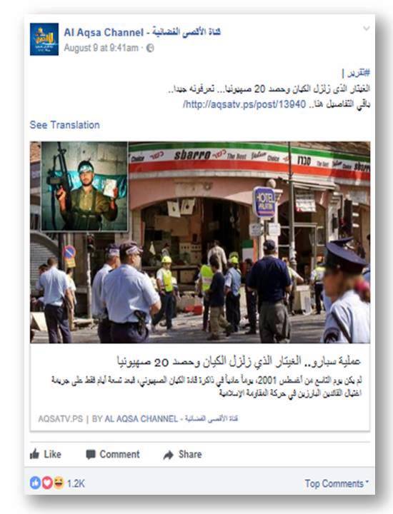 Last week’s anniversary of the Sbarro massacre was celebratedby the Aqsa TV channel, and their audience very much appreciated being reminded of the carnage perpetrated 16 years ago by Palestinian terrorists.