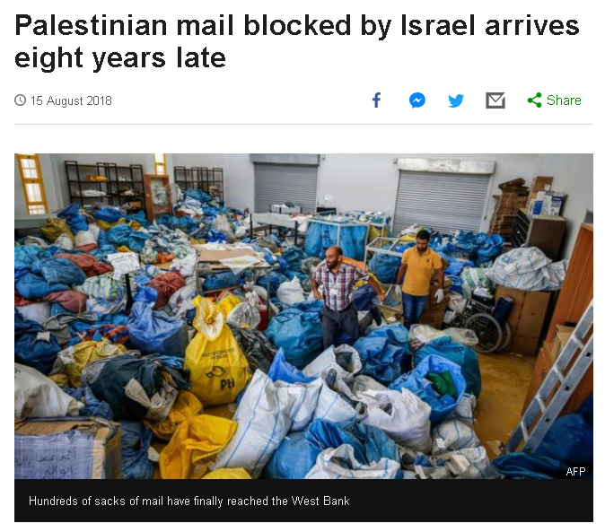 A small story showing how world media twists facts and propagates anti-Israel propaganda, generating more and more hatred towards Israel.In the last few days, the world’s leading media outlets are engulfed by the headline “Palestinian mail blocked by Israel arrives eight years late”.