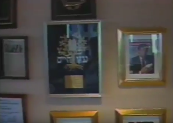 When Letterman visits Trump’s office, there is a shot of the wall where Trump places various awards he had received.
