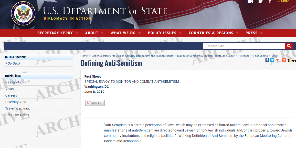 For one thing, there is a definition of antisemitism on the site that essentially uses Natan Sharansky’s “3-D” test for when criticism of Israel crosses the line into antisemitism. That is significant.