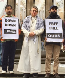 Or will he go for the full cassock, as favoured by his antipodean chum, Anglican priest Father Dave Smith, on an Al Quds Day Down Under more recently?