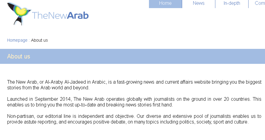 Al Araby Al Jadeed (Arabic), or The New Arab (English) is a UK-based newspaper meant to be more liberal than Al Jazeera. It claims to be professional and nonpartisan, although it is financed by Qatar: