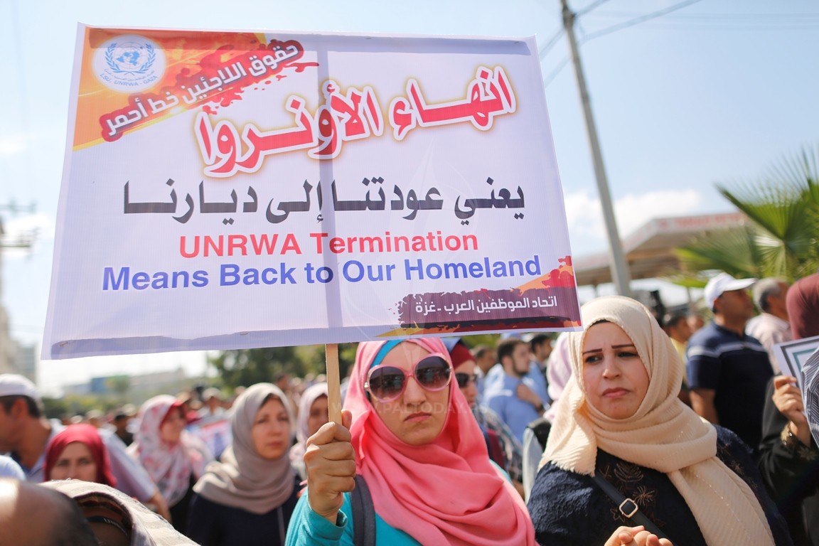 “UNRWA Termination Means Back to Our Homeland” is a poor English translation of “UNRWA can only fire us when we return to our ancestor’s homes in Israel.”