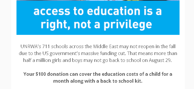 By the way, there are just about as many government-run schools in Gaza as there are UNRWA schools. The public schools are also free (although there are charges for books, which UNRWA gives out for free.)