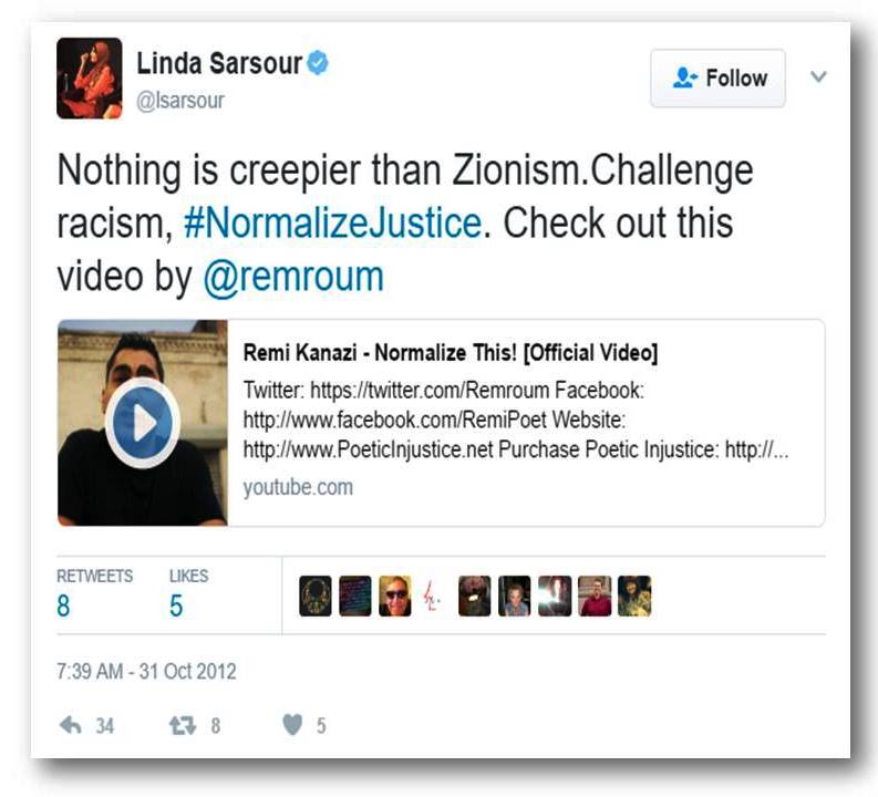The Washington Post identifiesthe author of the puff piece on Sarsour as a “reporter” who “writes about families, gender and religion.” Sarsour is certainly a fascinating person to write about for someone focusing on these issues – pity that Michael Alison Chandler took the easy way out and chose to simply add to the growing list of tributes that are ultimately only slightly more sophisticated versions of the “prayer” Sarsour liked so much: “#IPrayForLinda May God fortify her and strike down her enemies where they stand.”