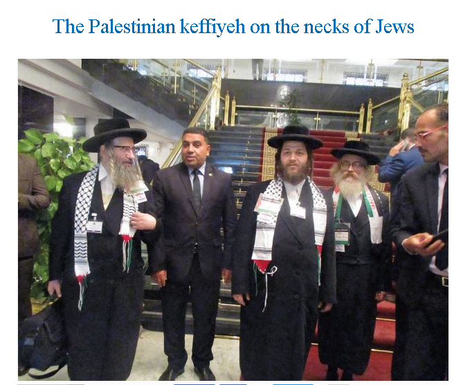 For some reason, though, I hear no protests when the tiny number of members of Neturei Karta put on keffiyehs. Why aren’t they stealing Palestinian heritage?