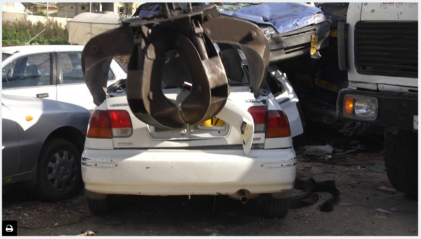 When they say “illegal” vehicles, they mean cars that were stolen from Israel. And the photo of one of the cars about the be destroyed shows an Israeli license plate: