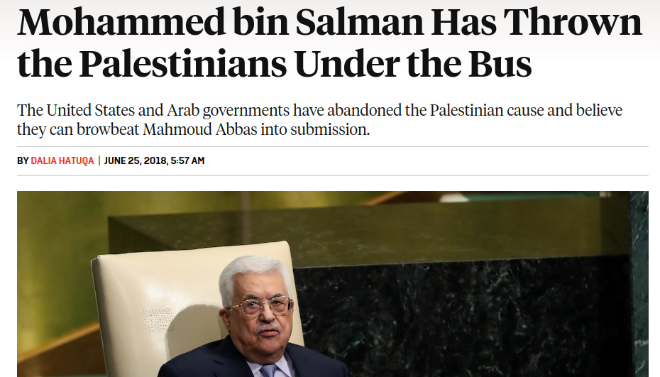 And the main point of the slowly emerging “deal of the century” is indeed to throw the Palestinians under the bus, as the FP headline says Saudi Arabia is doing.