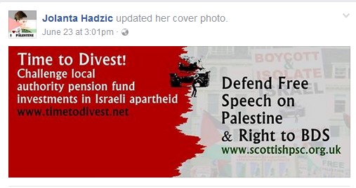 At the time I write this, Jolanta Hadzic has 1,031 Facebook Friends including the controversial Jacqueline Walker and Mick Napier himself. I’m not going to share the sickening antisemitic cartoon that she shared to social media which David Collier has unearthed. I wouldn’t presume to try to steal his thunder. Go to David’s latest brilliant article, about the demo in Glasgow against Radiohead and its Holocaust-denying contingent, to see the reprehensible truth.