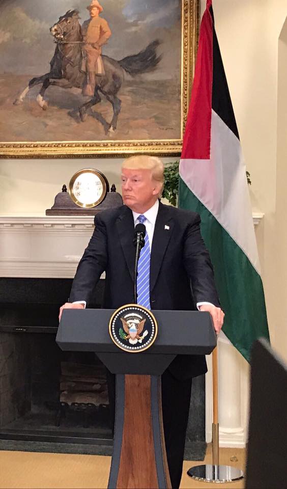 Inexplicably, President Trump was positioned in front of the Palestinian flag and Abbas in front of the American flag: