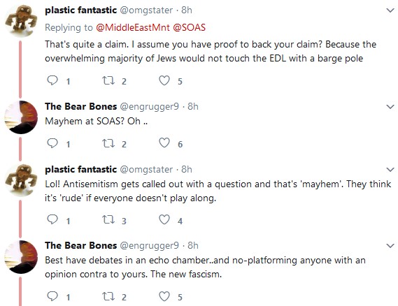 At London University’s School of Oriental and African Studies yesterday, an Israel-demonising affair didn’t go exactly as planned, owing to the presence of a stalwart band of Israel-supporters who told the participants what they didn’t want to hear, got ejected for doing so, and are now being slurred as “having ties to the EDL”.