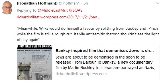 That slur is not only baseless but most ironic, given the fact that one of the anti-Israel activists who couldn’t attend, but would very much have liked to, is 9/11 truther Tony Gratrex, founder of the Reading PSC, who (see here for example) is widely perceived to be an antisemite: