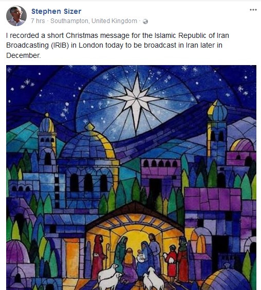 Talking of Iran, our old mate rhe CEO of “Peacemaker Mediators” (freshly fired up with support for Sabeel, btw) has just recorded a Christmas message: